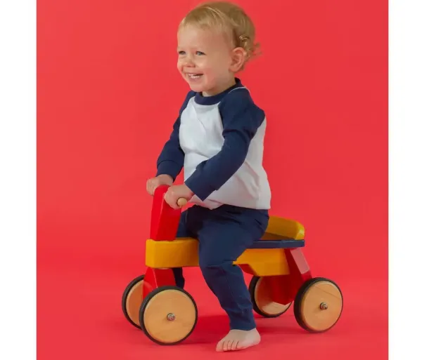 Tshirt baseball avec manches contrastées. Bords de manches unis. Double surpiqûres. Pantalon uni avec taille élastiquée. Bords en côte unis.